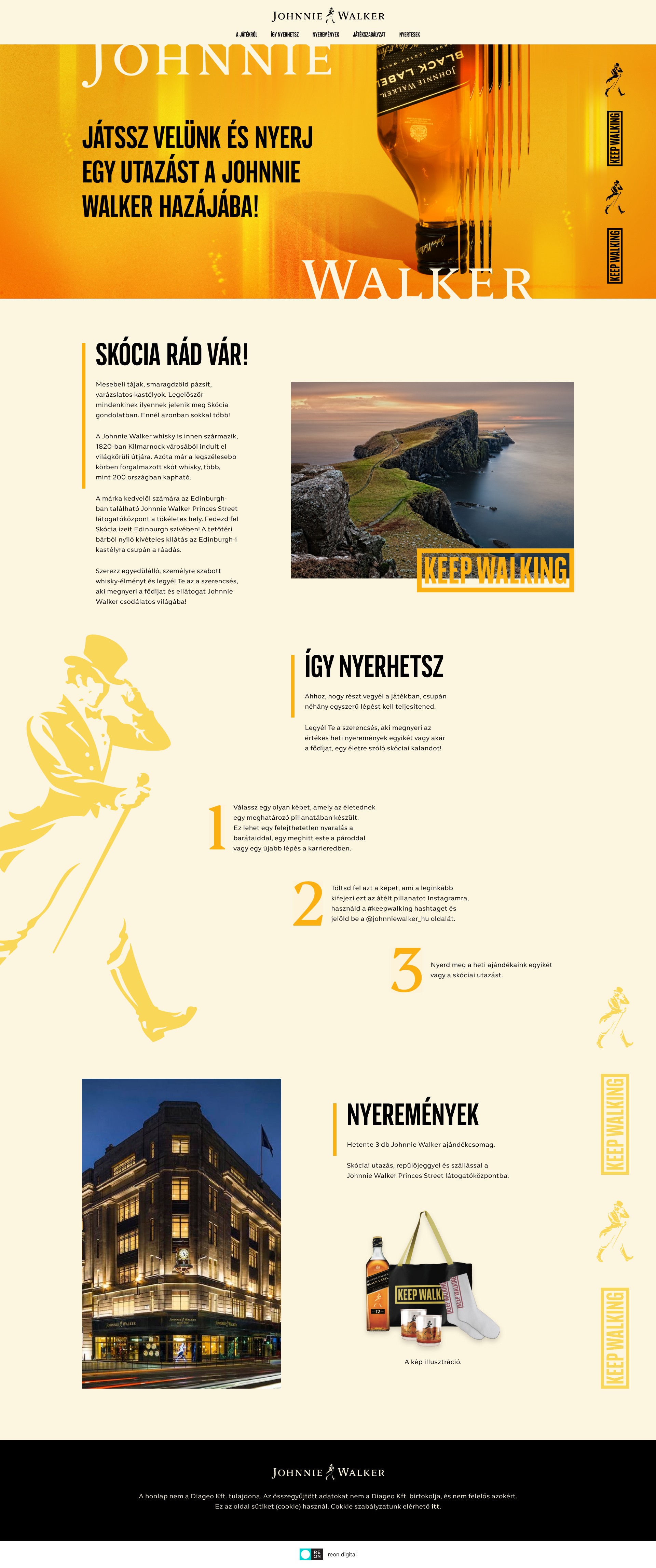 The goal of the project was to create a landing page for a Johnnie Walker social media campaign. The grand prize was a trip to Edinburgh, Scotland, and participants could also win Johnnie Walker products and merchandise.
